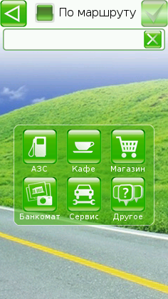Для каждого объекта указывается улица, номер дома, город и регион. Если флажок «По маршруту» снят, указывается расстояние по прямой. Иначе указывается расстояние по маршруту и расстояние от маршрута до объекта. При этом сначала выводятся объекты, расположенные недалеко от маршрута, затем — расположенные на удалении от маршрута, и последними — расположенные далеко от маршрута. Кнопка i открывает окно информации об объекте.