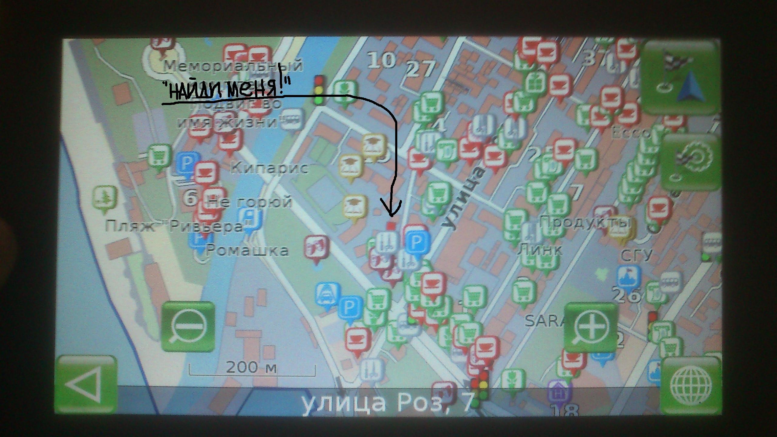 Да, еще. Заметил, что при поиске объекта, в итоге при выводе результата, искомый окрашивается в красный цвет, но при этом тонет в масштабе и лесе POI. Не забывайте мои "параметры"- "я в движении".