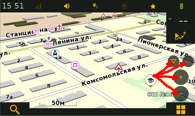 При отключенной галочке "сглаживать вращение" карта ориентируется без отклонения угла