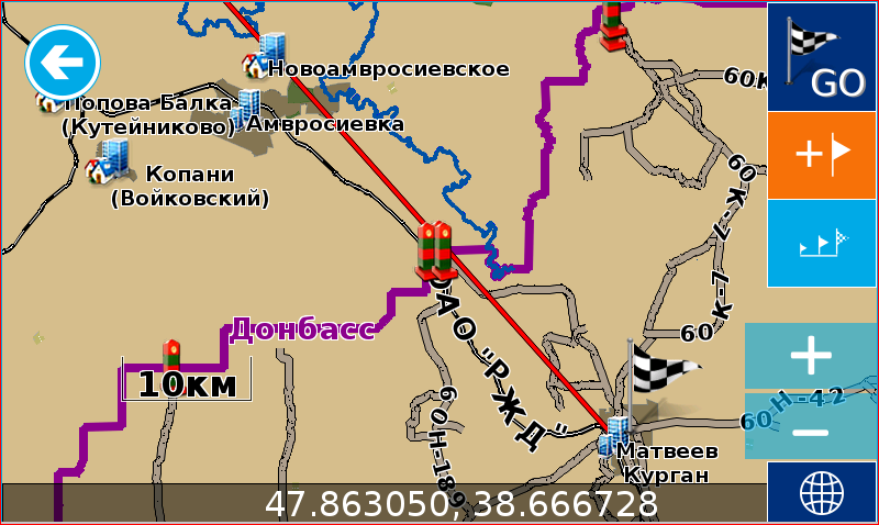 White_54, я что то не пойму, опять из ДНР в Ростовскую обл прокладывает маршрут по прямой